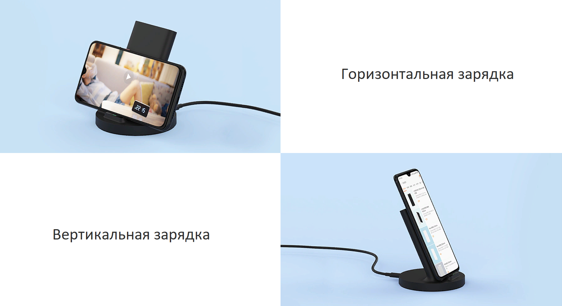 В отличии от китайских зарядных тарелочек, достаточно просто поставить на подставку смартфон с технологией беспроводной зарядки и он начинает заряжаться. Позиционировать можно как горизонтально, так и вертикально